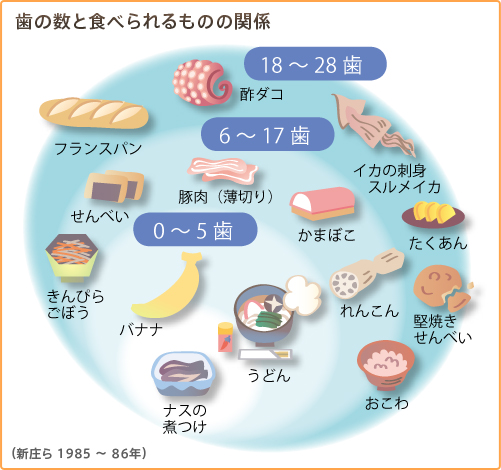 とくに50歳代以降では、歯周病が悪化して歯を失うことが多く、高齢期の食生活に大きな支障をきたします。