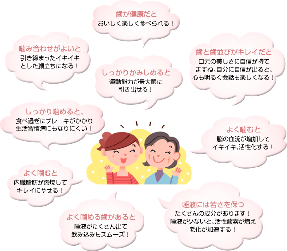 ドライマウスなどが原因で唾液が減少すると、お口の中は細菌が繁殖しやすい環境になり、嚥下機能の低下した高齢者は、誤嚥性肺炎かかりやすくなります。歯の喪失を防いで、いつまでも楽しい食生活を送るために、丁寧なセルフケアと定期健診を受けましょう。